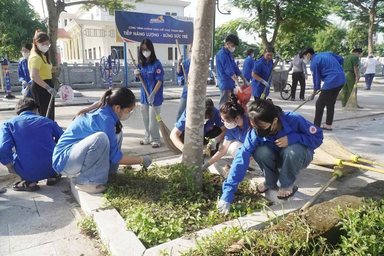 Tuổi trẻ phường Nếnh dọn dẹp vệ sinh môi trường.