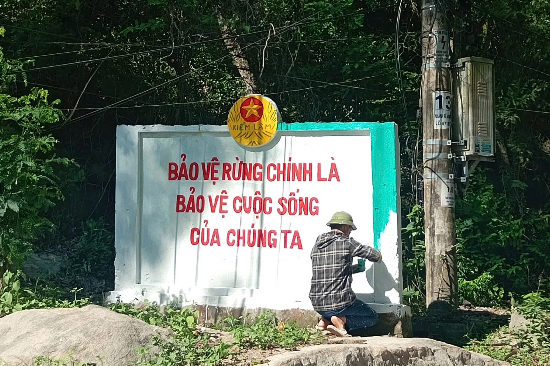 Sơn sửa bảng tuyên truyền khu vực lên núi Trường Lệ