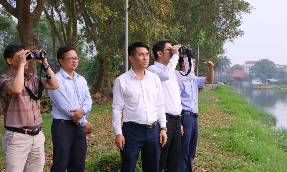 Cán bộ Chi cục Kiểm lâm tỉnh Bắc Ninh thăm hệ sinh thái chim nước tại Trường Đại học Nông - Lâm Bắc Giang.