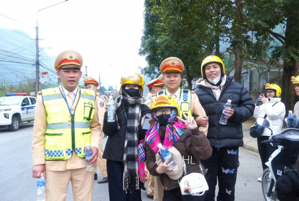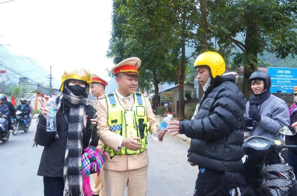 Đại úy Lục Cao Hiệp, cán bộ Phòng CSGT Công an tỉnh cho biết: Những ngày cao điểm nghỉ lễ, đơn vị tăng cường lực lượng tuần tra, kiểm soát, duy trì chốt tại các vị trí trọng điểm, vừa bảo đảm trật tự an toàn giao thông, vừa sẵn sàng hỗ trợ người dân, du khách khi gặp sự cố. Đồng thời, CBCS phát nước miễn phí, động viên, tiếp sức du khách trong hành trình du xuân.
