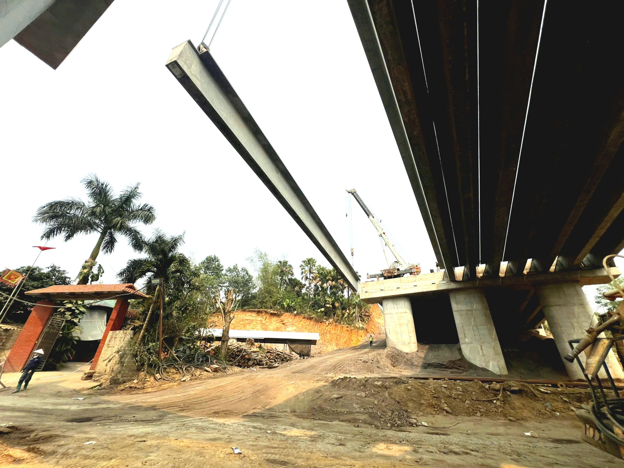 Để giữ nhịp tiến độ, nhà thầu đã bố trí 10 mũi thi công cầu và 2 đội thi công nền đường, mỗi đội triển khai 5 mũi đồng loạt. Tổng lực lượng huy động lên tới khoảng 300 đầu thiết bị cùng 450 nhân công, tổ chức thi công 3 ca liên tục.