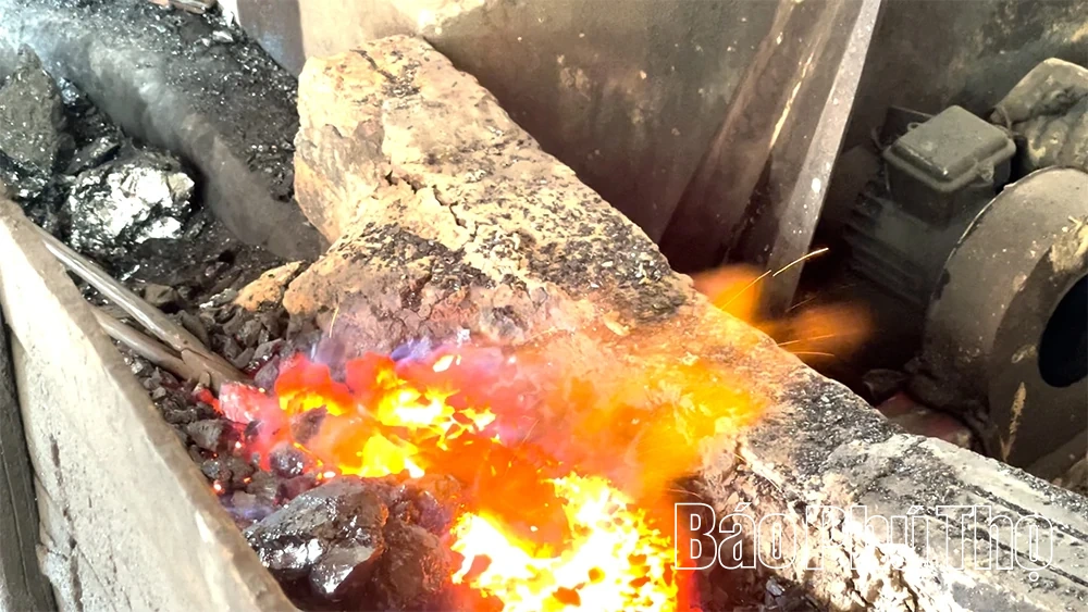 Tại làng nghề Bàn Mạch tiếng búa nện nhịp nhàng trên sắt thép nóng đỏ tạo nên âm thanh rộn ràng, khắc họa hình ảnh những “đóa hoa lửa” rực rỡ.
