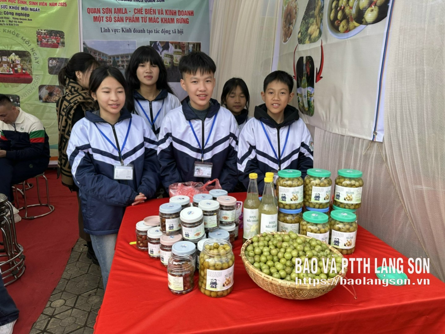 Học sinh Trường THCS Quan Sơn nghiên cứu các sản phẩm khởi nghiệp từ quả mác kham rừng