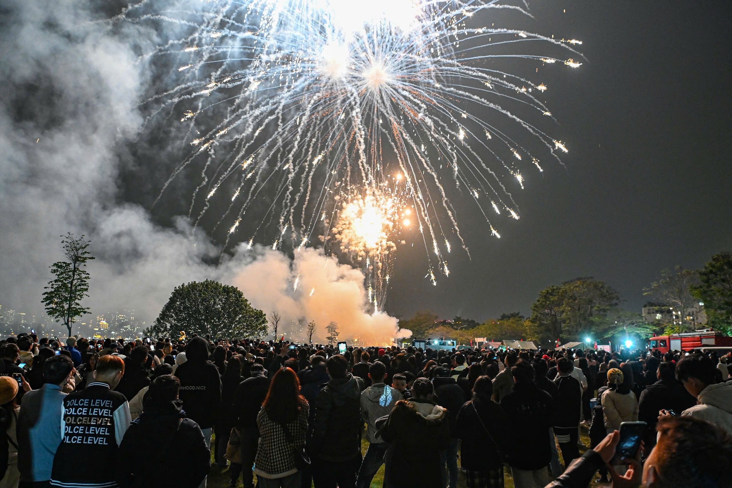 Người dân chiêm ngưỡng màn pháo hoa mừng năm mới trong sự bình an