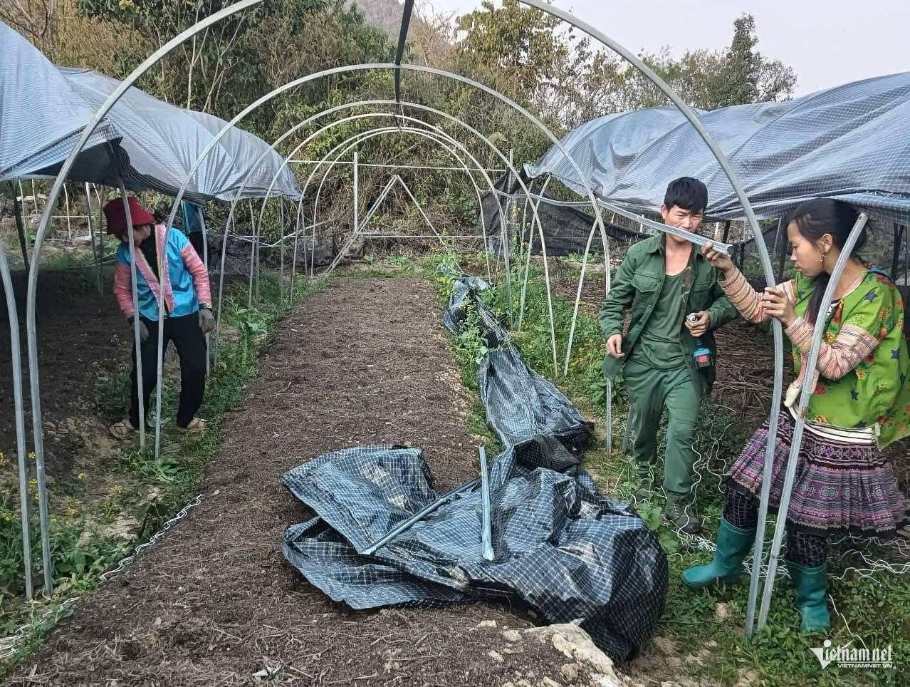 Nhiều bà con người Mông, Dao… làm công việc chăm sóc, trông coi vườn sâm với mức lương ổn định 5-6 triệu đồng/tháng. Ảnh: Nhân vật cung cấp