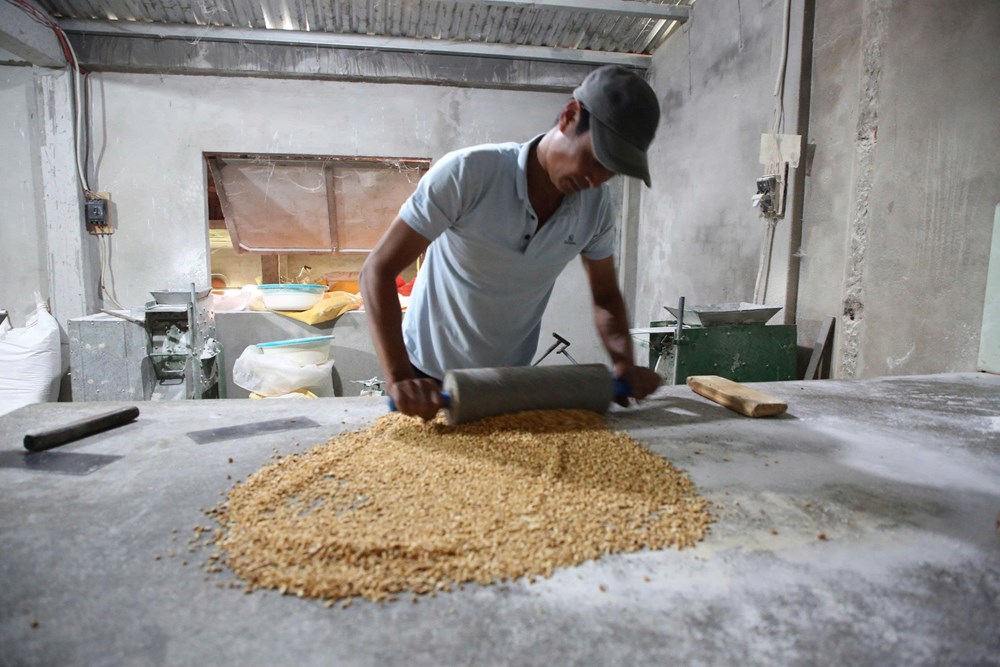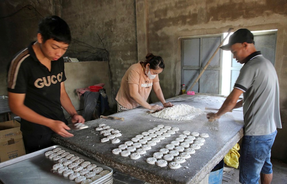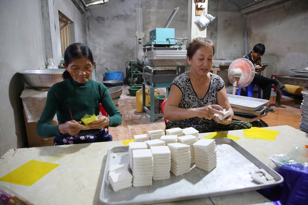 Là thế hệ thứ ba nối nghề, ông Đặng Xuân Cầm (72 tuổi) cho biết gia đình ông năm nào cũng bắt tay làm bánh từ đầu tháng 12 âm lịch. Năm nay, cơ sở của ông dự kiến cho ra thị trường khoảng 3 tấn bánh, chủ yếu là bánh in đậu xanh và bánh in nếp. Những ngày cận Tết, cả gia đình 6 người tất bật làm việc, có khi phải thức thâu đêm để kịp các đơn đặt hàng từ nhiều nơi
