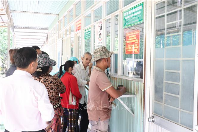 Người dân làm thủ tục xuất, nhập cảnh tại Cửa khẩu Mỹ Quý Tây (xã Mỹ Quý, tỉnh Tây Ninh).
