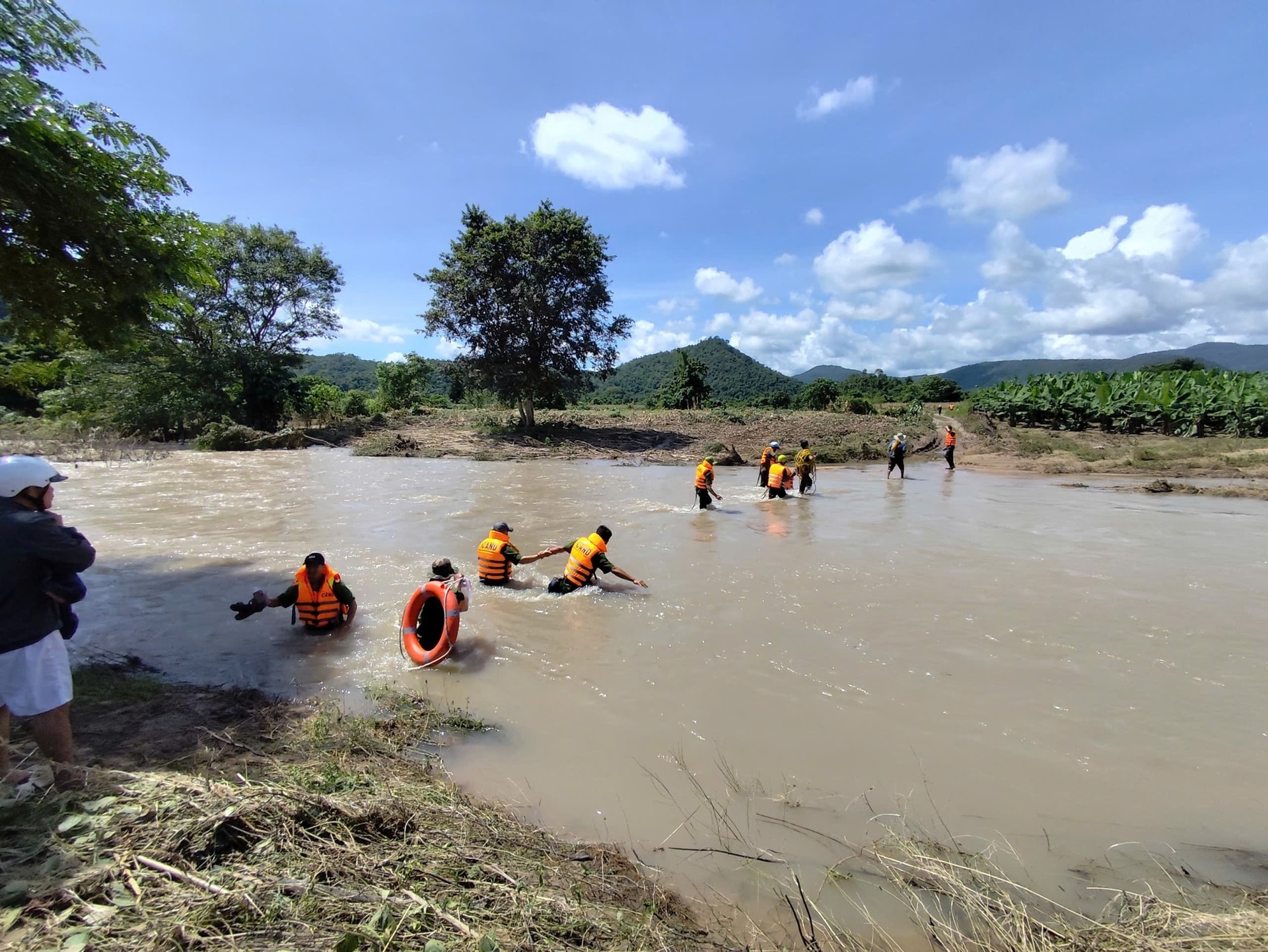 Công an xã Phan Sơn vượt qua nước lũ giúp đỡ người dân