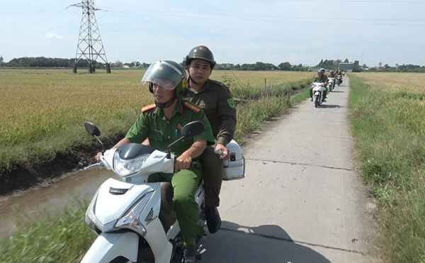 Tổ bảo vệ ANTT ấp Ba (xã An Long) cùng lực lượng Công an xã tuần tra, kiểm soát trên địa bàn.
