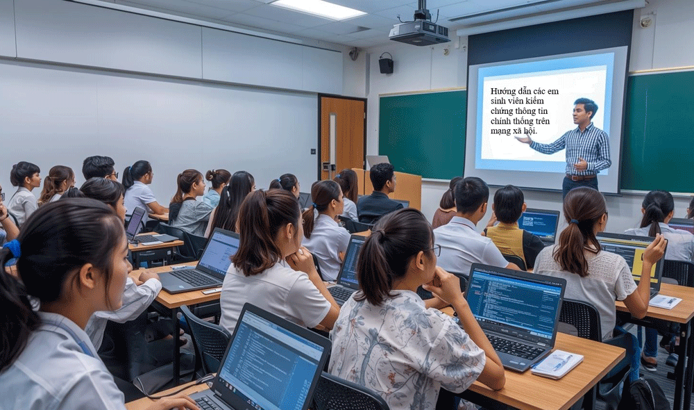 Giảng viên phổ biến kiến thức về nhận diện tin giả, phòng tránh lừa đảo và ứng xử văn minh trên mạng xã hội. Ảnh minh họa