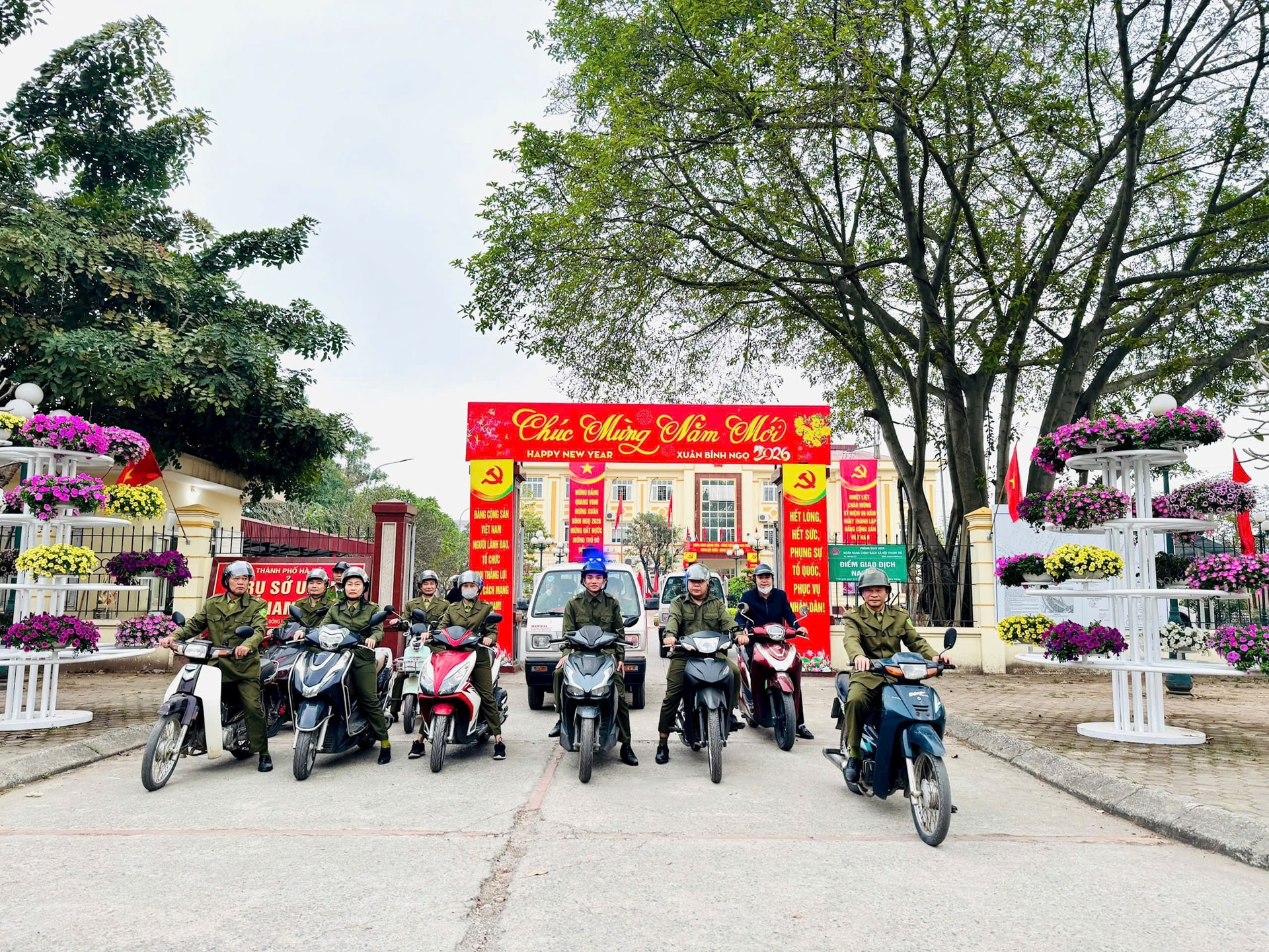 Công an xã Nam Phù giữ gìn trật tự đô thị dịp Tết Bính Ngọ 2026. Ảnh: Phương Xuyế