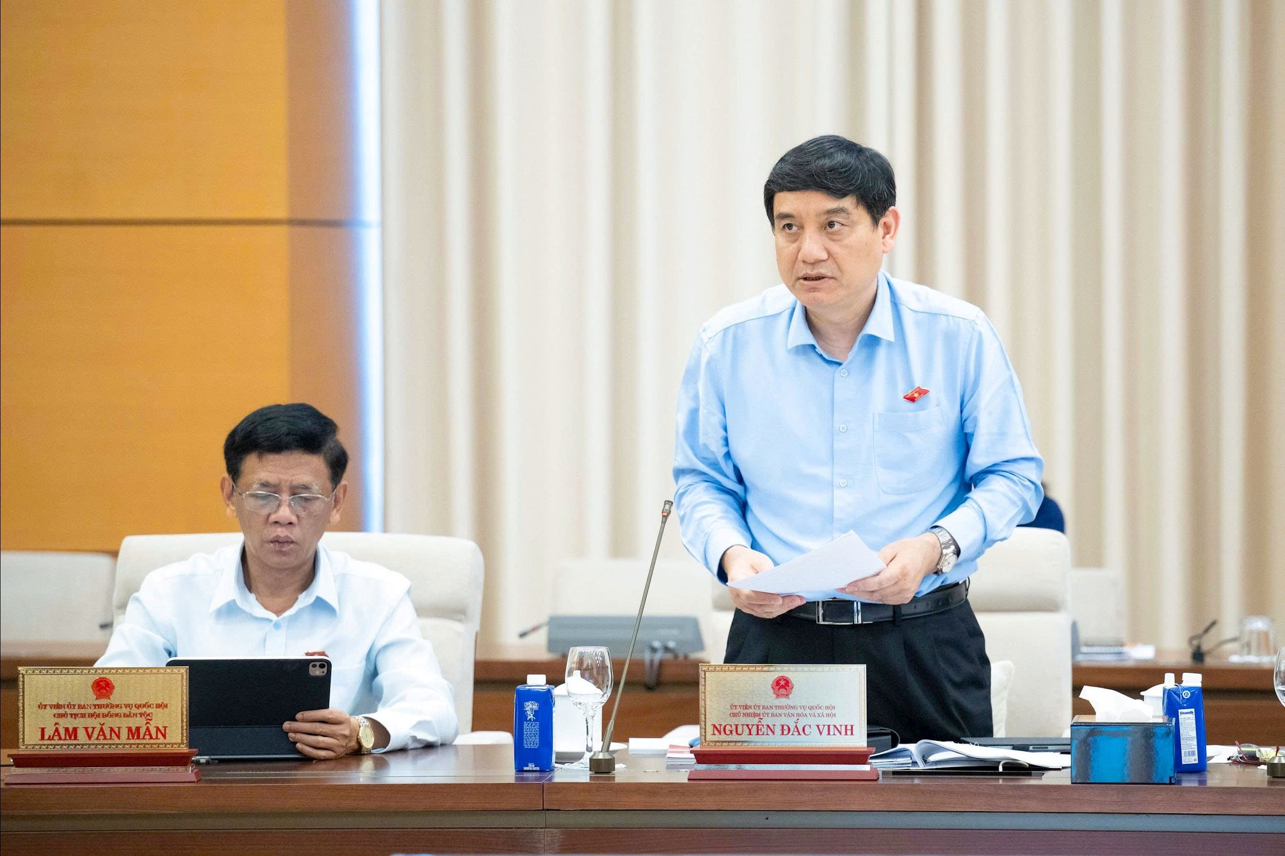 Chủ nhiệm Ủy ban Văn hóa và Xã hội Nguyễn Đắc Vinh trình bày báo cáo thẩm tra