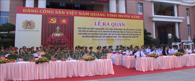 Lễ ra quân thực hiện cao điểm phòng ngừa, phát hiện, ngăn chặn và trấn áp tội phạm, bảo đảm an ninh trật tự dịp Tết Nguyên đán Bính Ngọ 2026. Ảnh: Huyền Trang/TTXVN