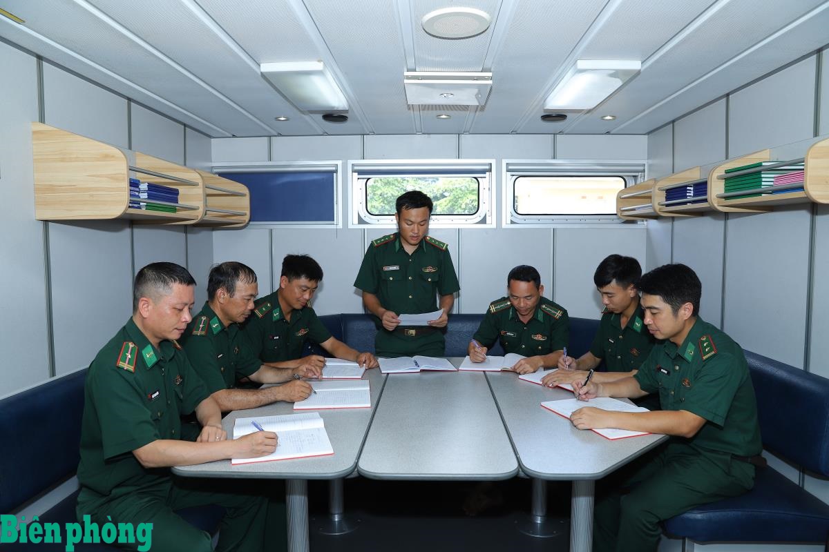 Các chi bộ tàu thuộc các Đảng ủy Hải đội, Hải đoàn Biên phòng 38 duy trì có nền nếp, hiệu quả sinh hoạt chi bộ trong lúc làm nhiệm vụ trên biển. Ảnh: Hà Vinh