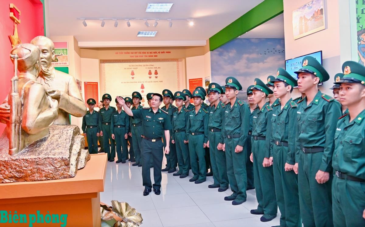 Cán bộ BĐBP tỉnh Quảng Ninh giới thiệu về lịch sử xây dựng, chiến đấu và trưởng thành của lực lượng BĐBP và BĐBP tỉnh Quảng Ninh cho chiến sĩ mới. Ảnh: Xuân Hùng