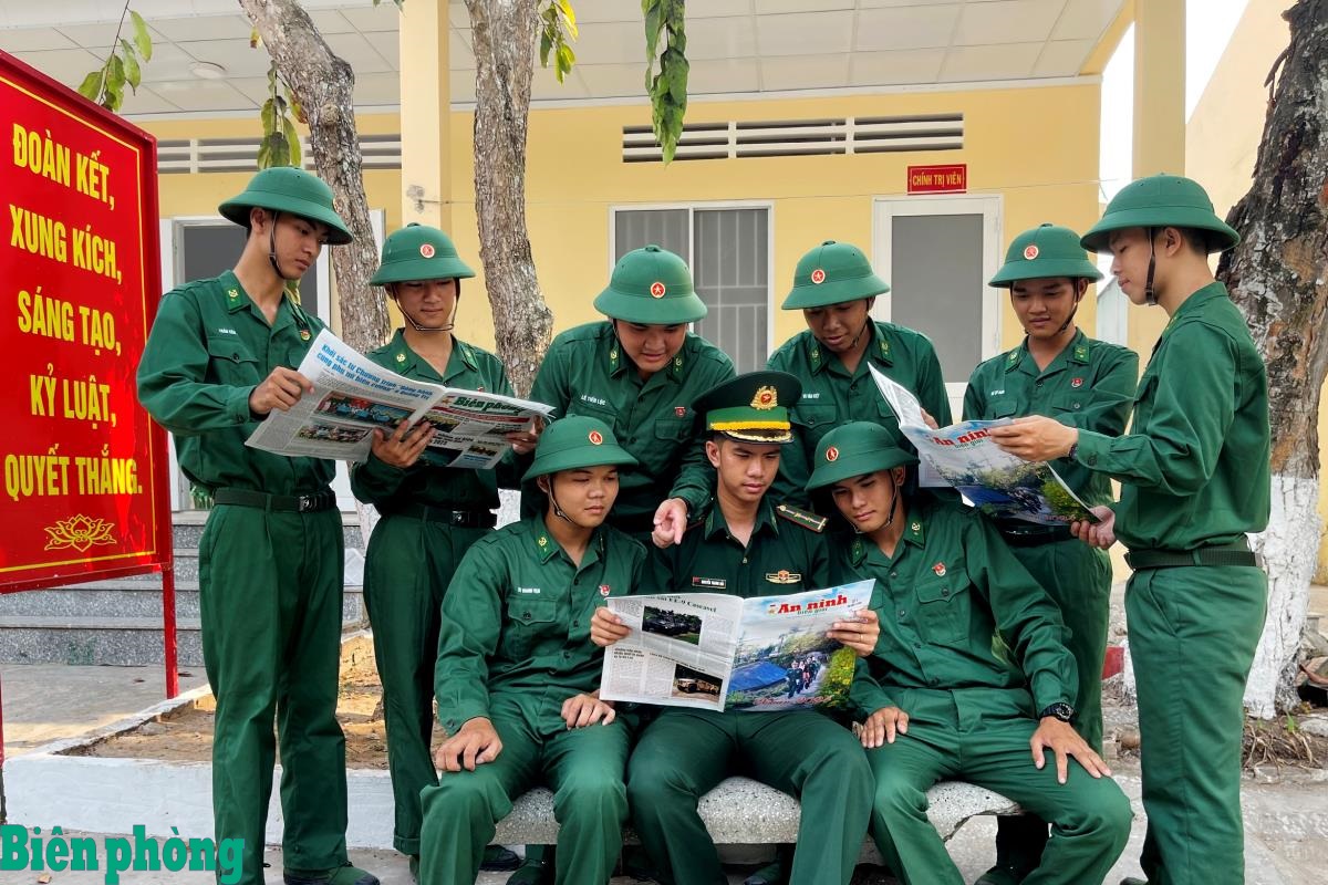 Cán bộ Tiểu đoàn Huấn luyện-Cơ động, BĐBP tỉnh An Giang tổ chức cho bộ đội tiếp cận với các nguồn thông tin chính thống, nâng cao nhận thức và bản lĩnh chính trị. Ảnh: Di Khải