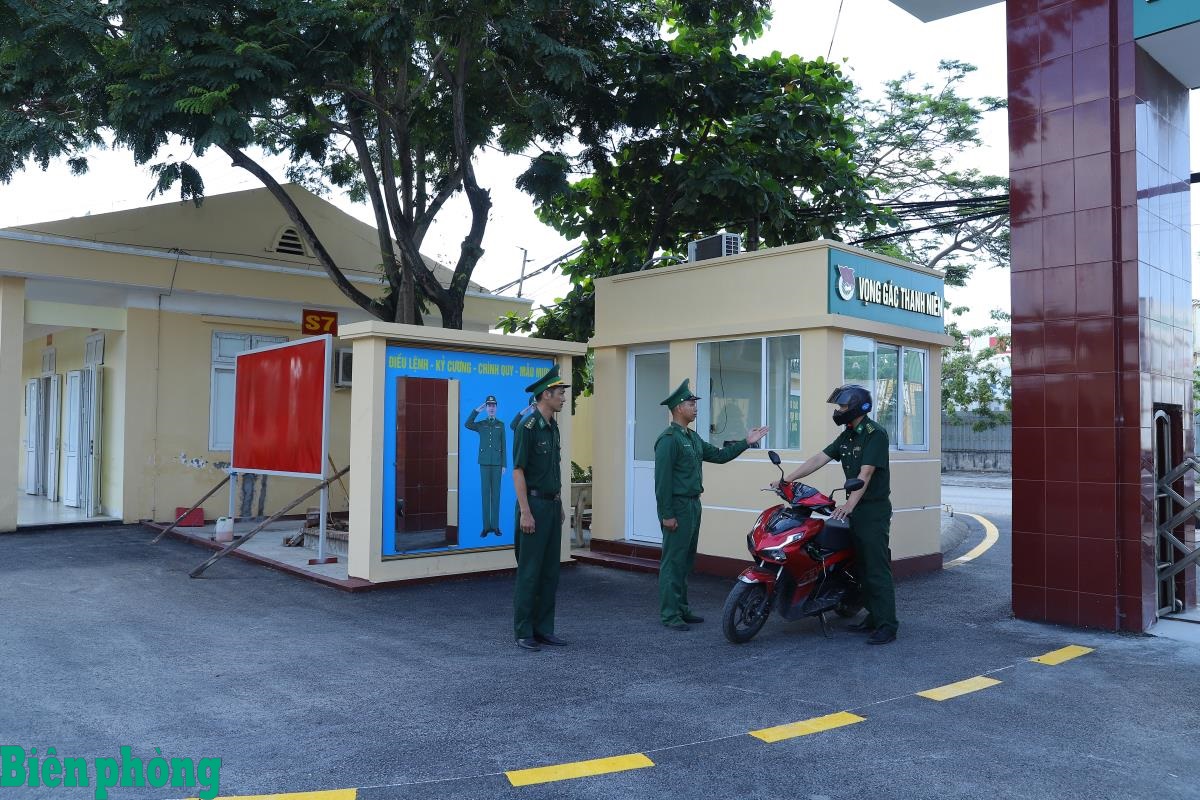 Hải đoàn Biên phòng 38 kiểm tra lễ tiết tác phong quân nhân khi tham gia giao thông. Ảnh: Hà Vinh