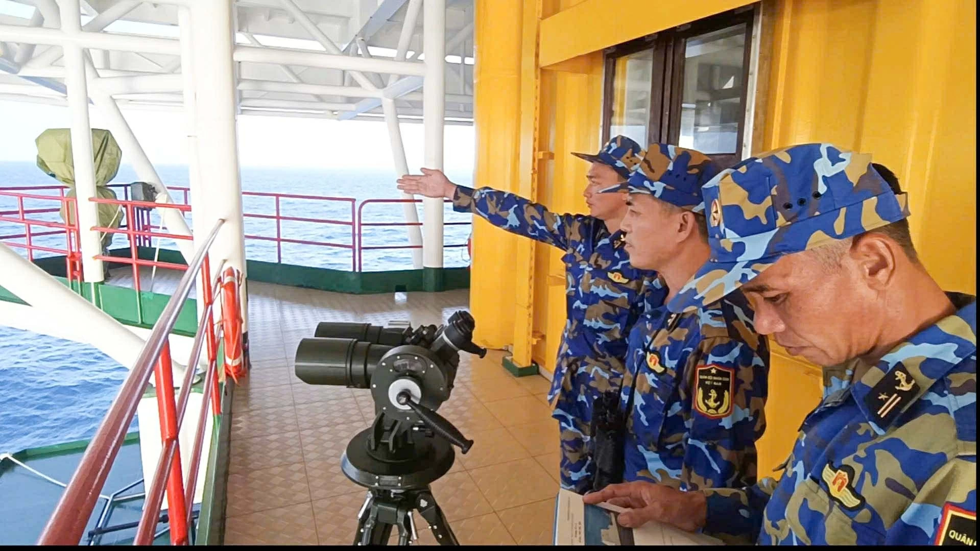 Tăng cường trực quan sát, phát hiện mục tiêu từ sớm, từ xa, đảm bảo xử trí mọi tình huống có thể xảy ra trong dịp diễn ra Đại hội Đảng. (Ảnh Quân chủng Hải quân cung cấp)