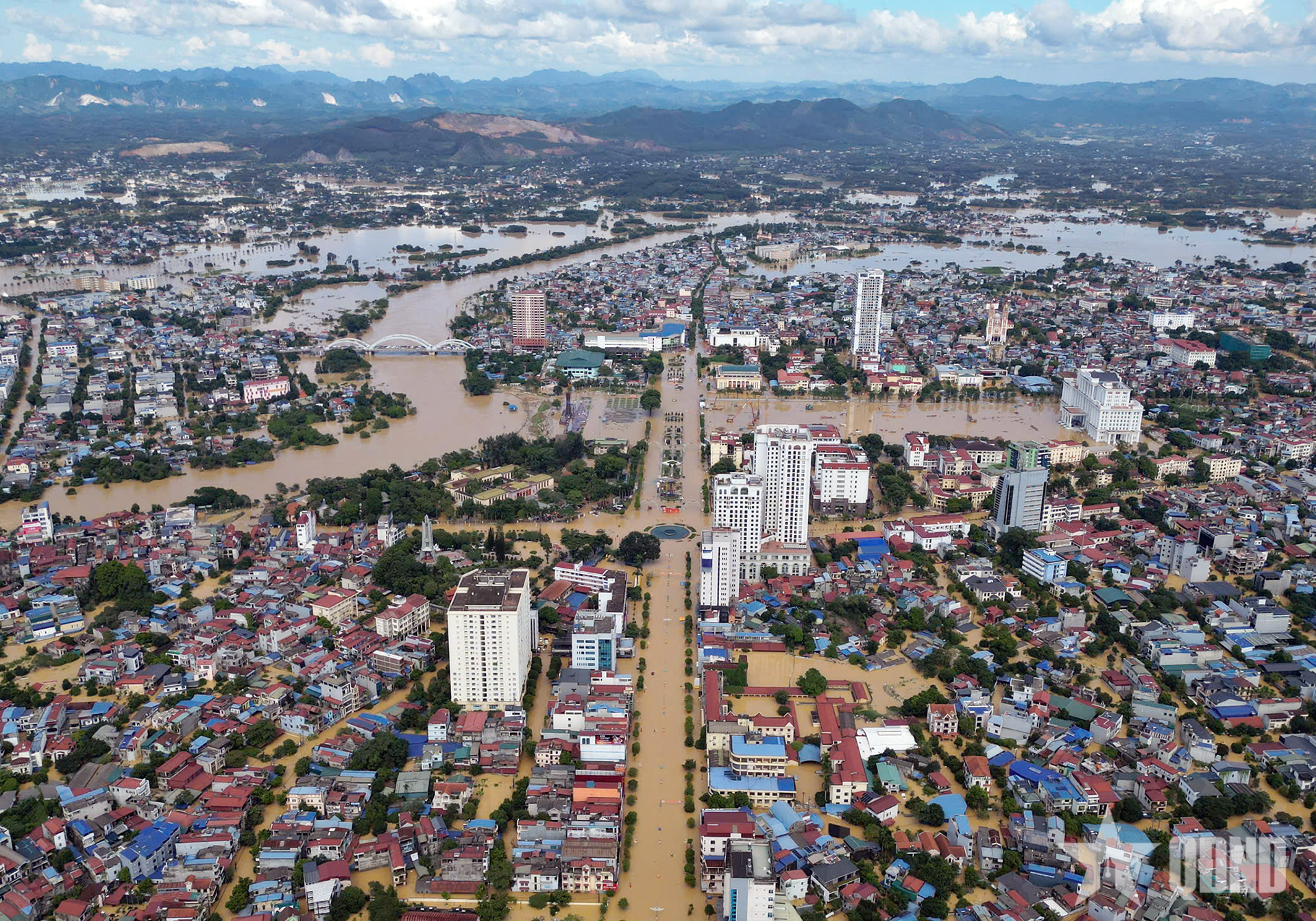 Nhiều phường, xã của tỉnh Thái Nguyên ngập sâu trong nước lũ.