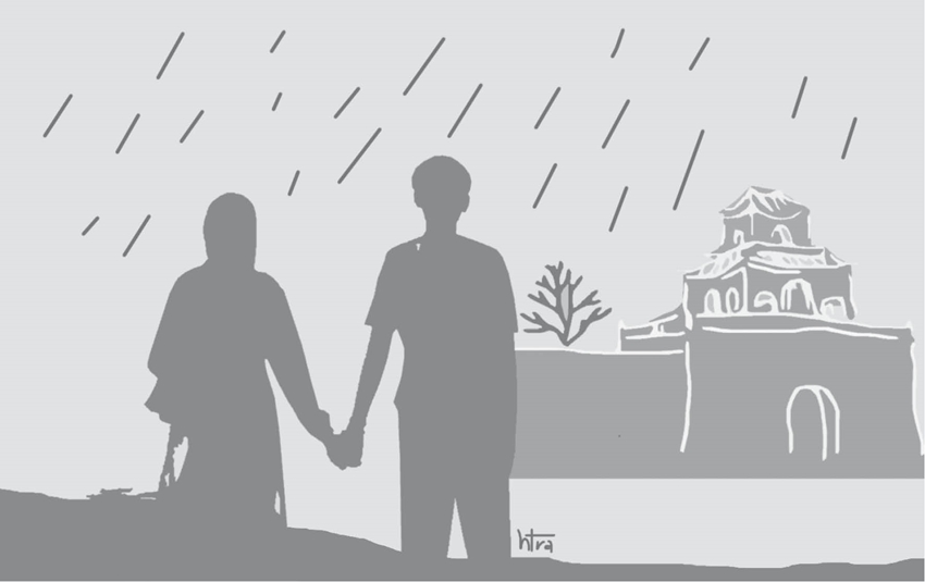 Chiều nay, Huế bỗng đổ mưa. Không phải cơn mưa buồn, mà là thứ mưa dịu dàng, mỏng như tơ, phủ lên phố xá một gam màu mờ ảo. An đang thả từng bước trên con đường ven sông Hương thì Khuyên xuất hiện, tóc và vai áo ướt nhẹ. Cô không nói gì, chỉ mỉm cười, đôi mắt sáng trong như chính cơn mưa Huế. Bàn tay nhỏ nhắn tìm lấy bàn tay An. Họ lặng lẽ bước đi song song dưới cơn mưa đang rơi, từng hạt nước lăn dài xuống má, xuống vai, mát lạnh mà ấm áp lạ thường.