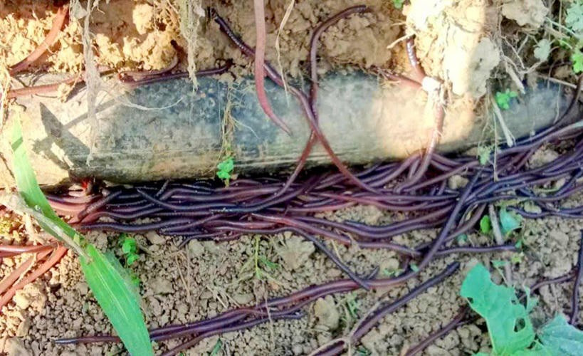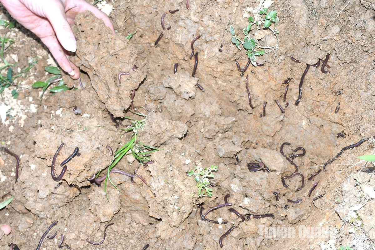 Trong 2 ngày 5 - 6/10/2024, người dân trên địa bàn xã Thành Long, huyện Hàm Yên (tỉnh Tuyên Quang) chứng kiến hiện tượng hàng loạt giun đất ngoi kín mặt ruộng dưa. Ảnh: tuyenquang.gov.vn.