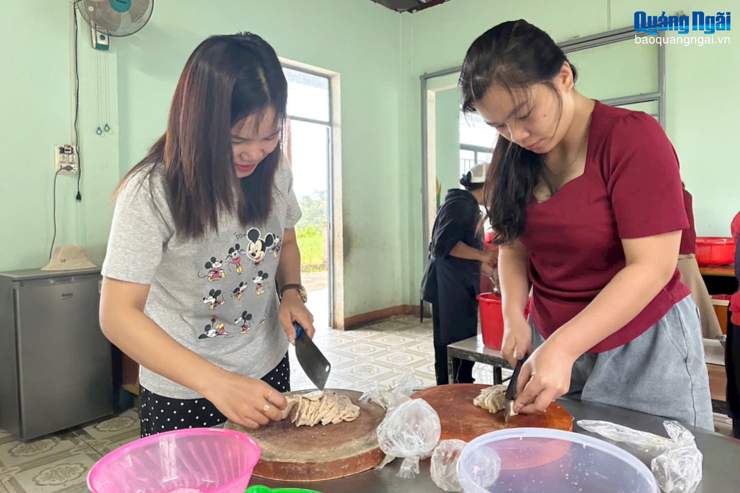 Giáo viên Trường Tiểu học Kim Đồng tất bật chuẩn bị đồ ăn cho học sinh.