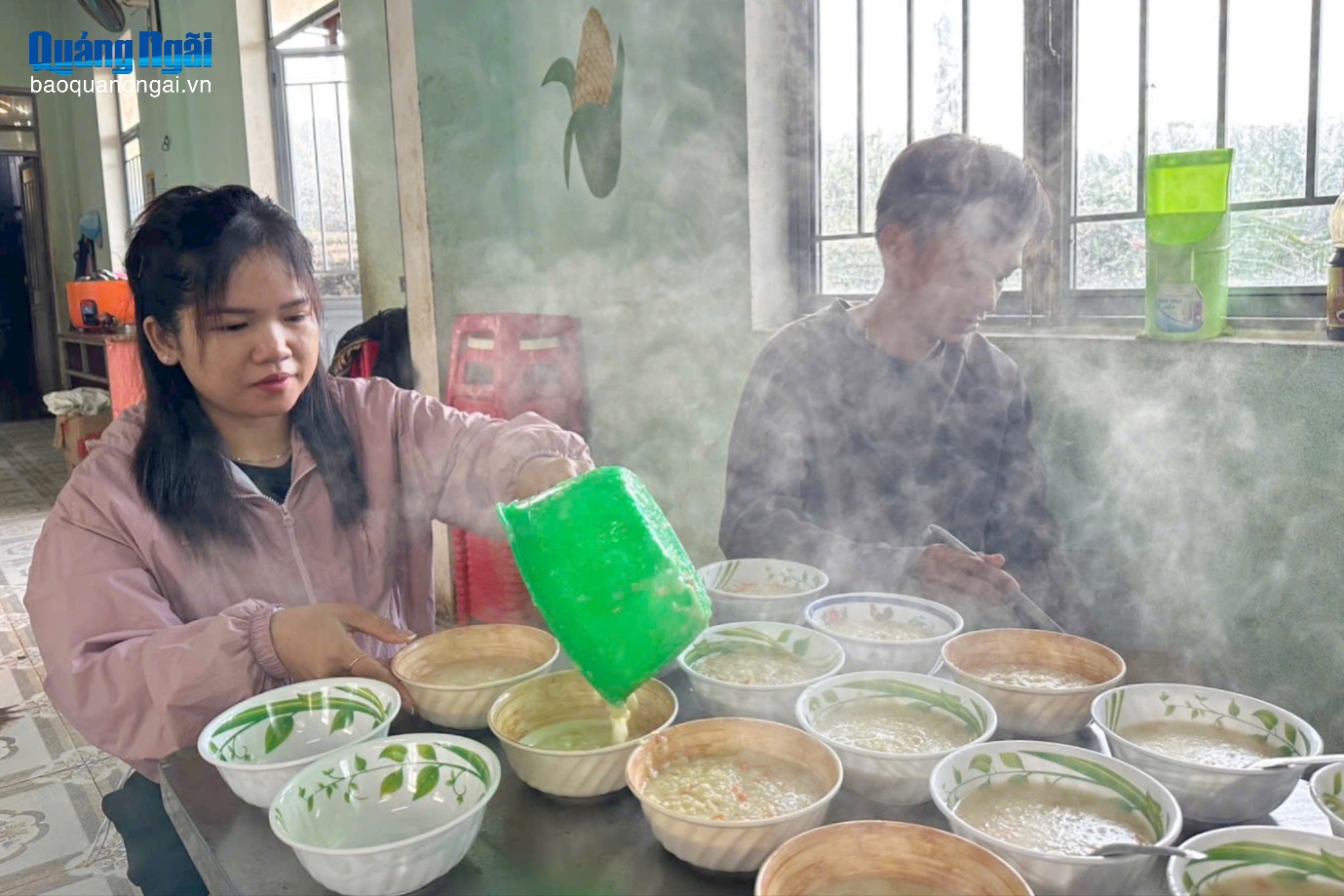"Mỗi năm, nhà trường nuôi khoảng 10 - 15 con heo và hơn 140 con gà, vịt. Số tiền thu được sẽ dành một phần để tái sản xuất, phần còn lại để chuẩn bị thức ăn hàng ngày cho học sinh. Thức ăn được nấu tại điểm trường chính, sau đó sẽ được giáo viên mang đến điểm trường thôn. Mỗi lần như vậy, thầy cô sẽ mang theo cơm, phòng trường hợp các em không đủ cơm ăn hoặc quên mang theo", cô Vân nói.