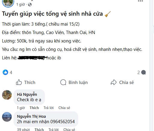 Các hội nhóm đăng thông tin tìm giúp việc theo giờ nhộn nhịp ngày giáp Tết