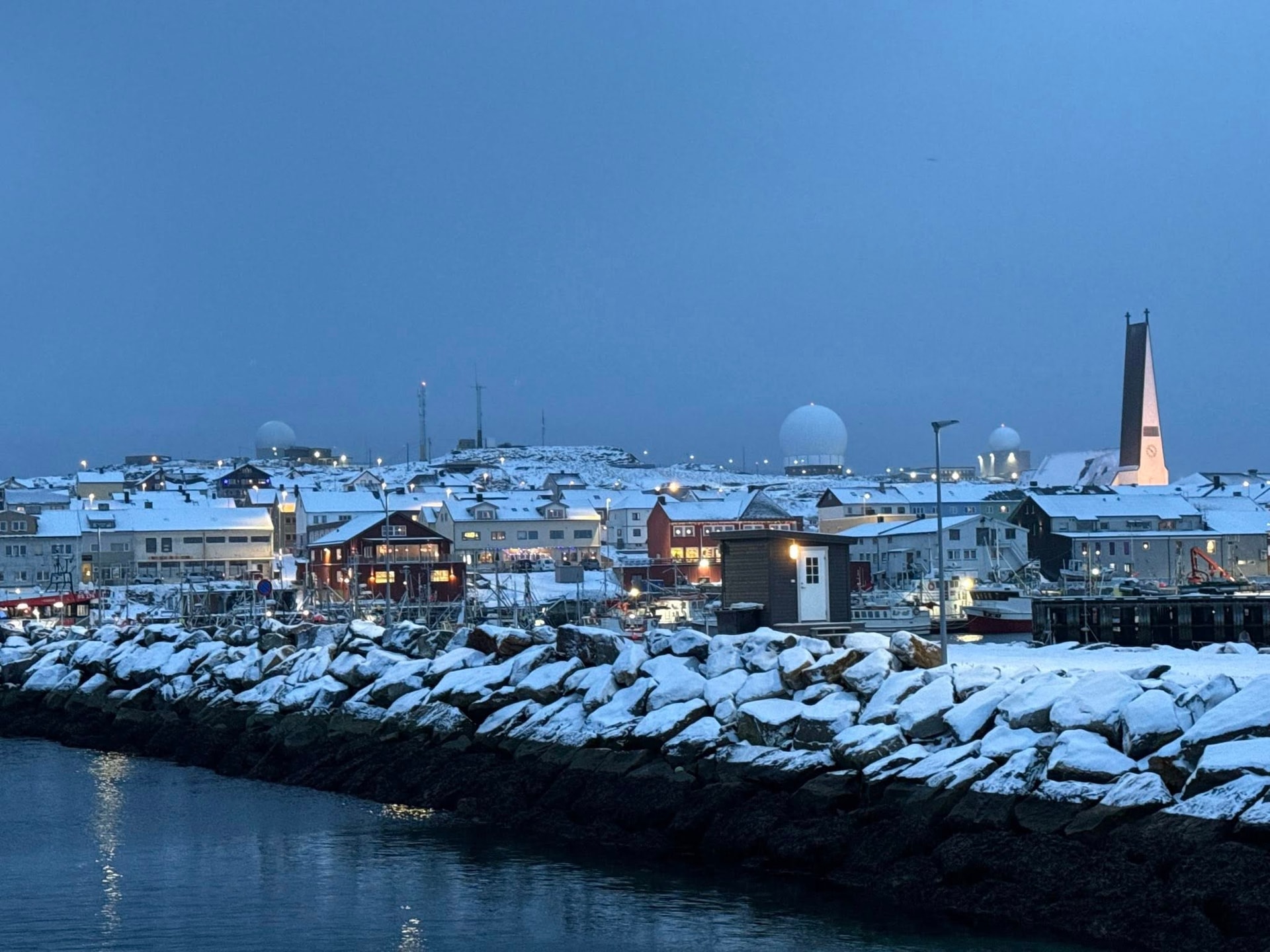 Tôi đến Vardø vào một buổi sáng khi tuyết phủ trắng như bột mịn. Thị trấn không lớn, nhưng mỗi con đường, mỗi ô cửa đều mang trong mình sự yên tĩnh của vùng cực. Gió Barents lướt ngang qua mặt biển tạo nên những âm thanh như hơi thở của Trái Đất. Mọi thứ đều mềm mại và tĩnh lặng, trái ngược hoàn toàn với câu chuyện công nghệ đang diễn ra ngay trên ngọn đồi Vårberget phía sau thị trấn.