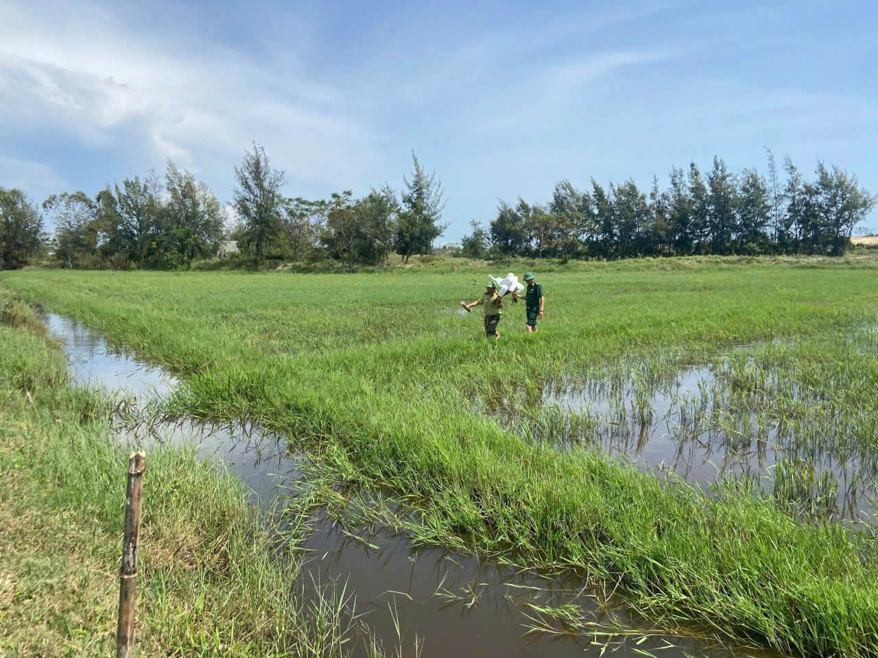 Lực lượng phối hợp tiêu hủy bẫy cò và thả cò về tự nhiên.