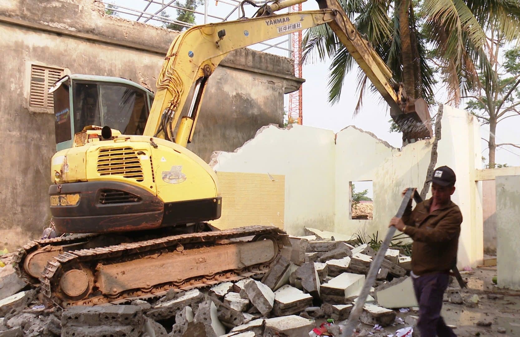Các hộ dân tháo dỡ công trình, bàn giao mặt bằng cho đơn vị thi công. Ảnh: Như Thành