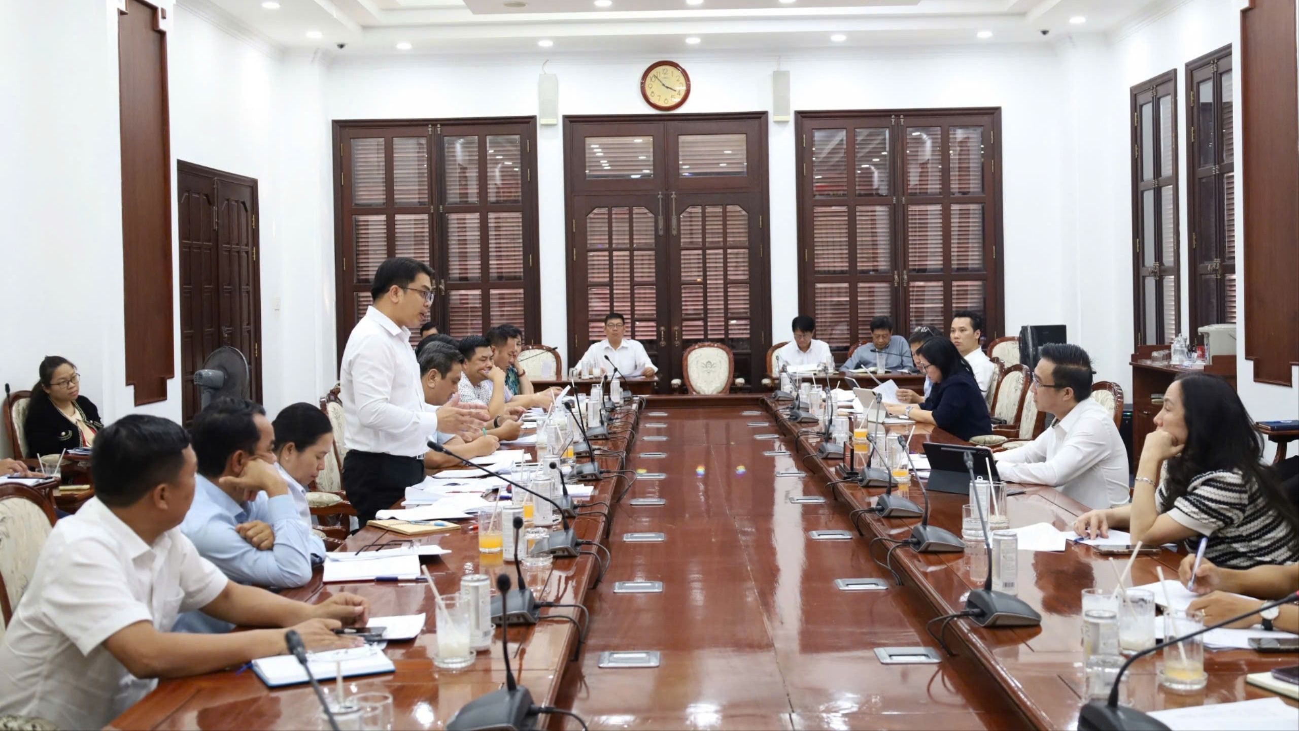 Lãnh đạo xã Thạnh An báo cáo tại tại buổi làm việc