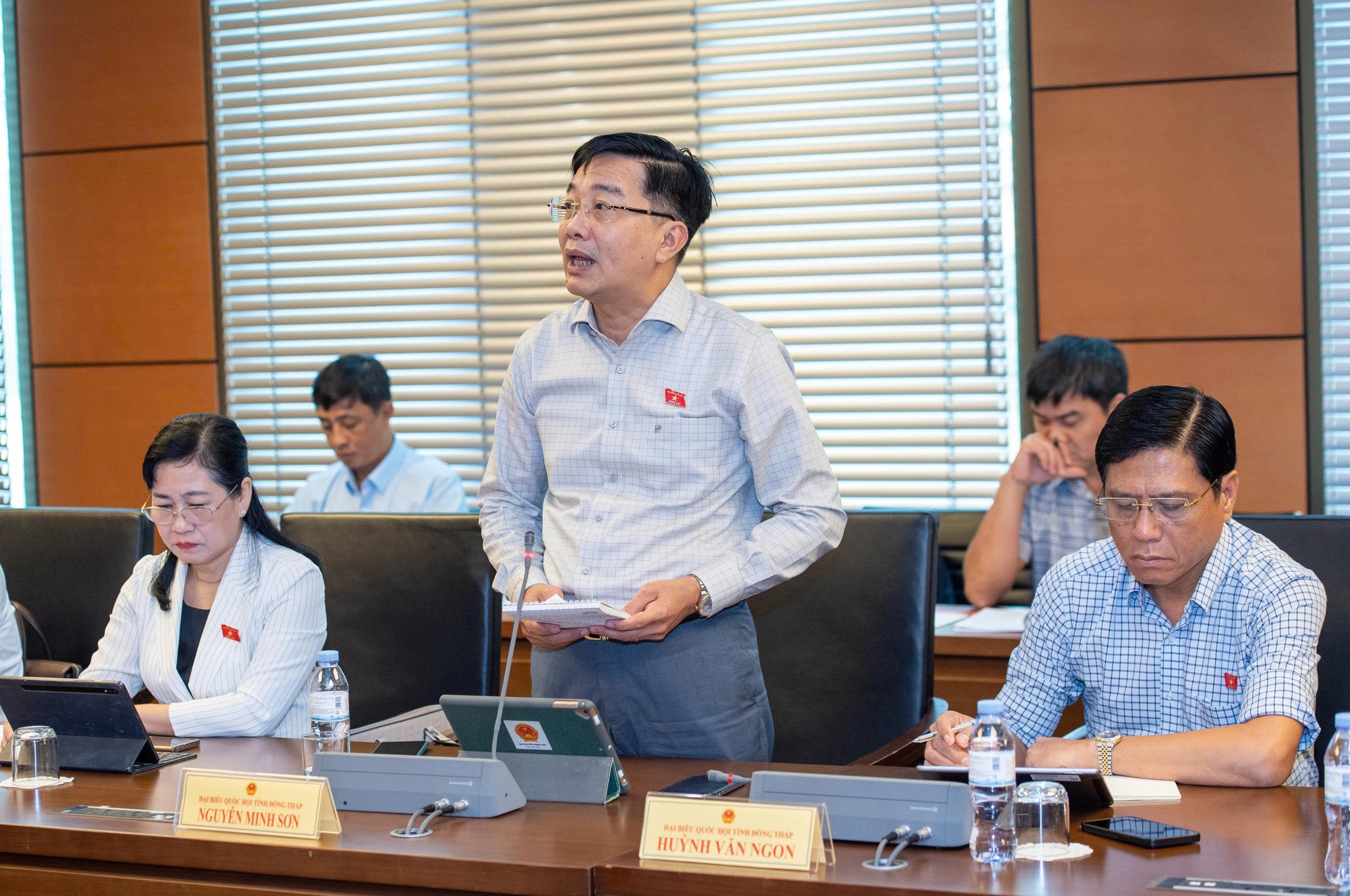 Phó Chủ nhiệm Ủy ban Kinh tế và Tài chính, ĐBQH Nguyễn Minh Sơn (Đồng Tháp) phát biểu. Ảnh: Mạnh Hưng