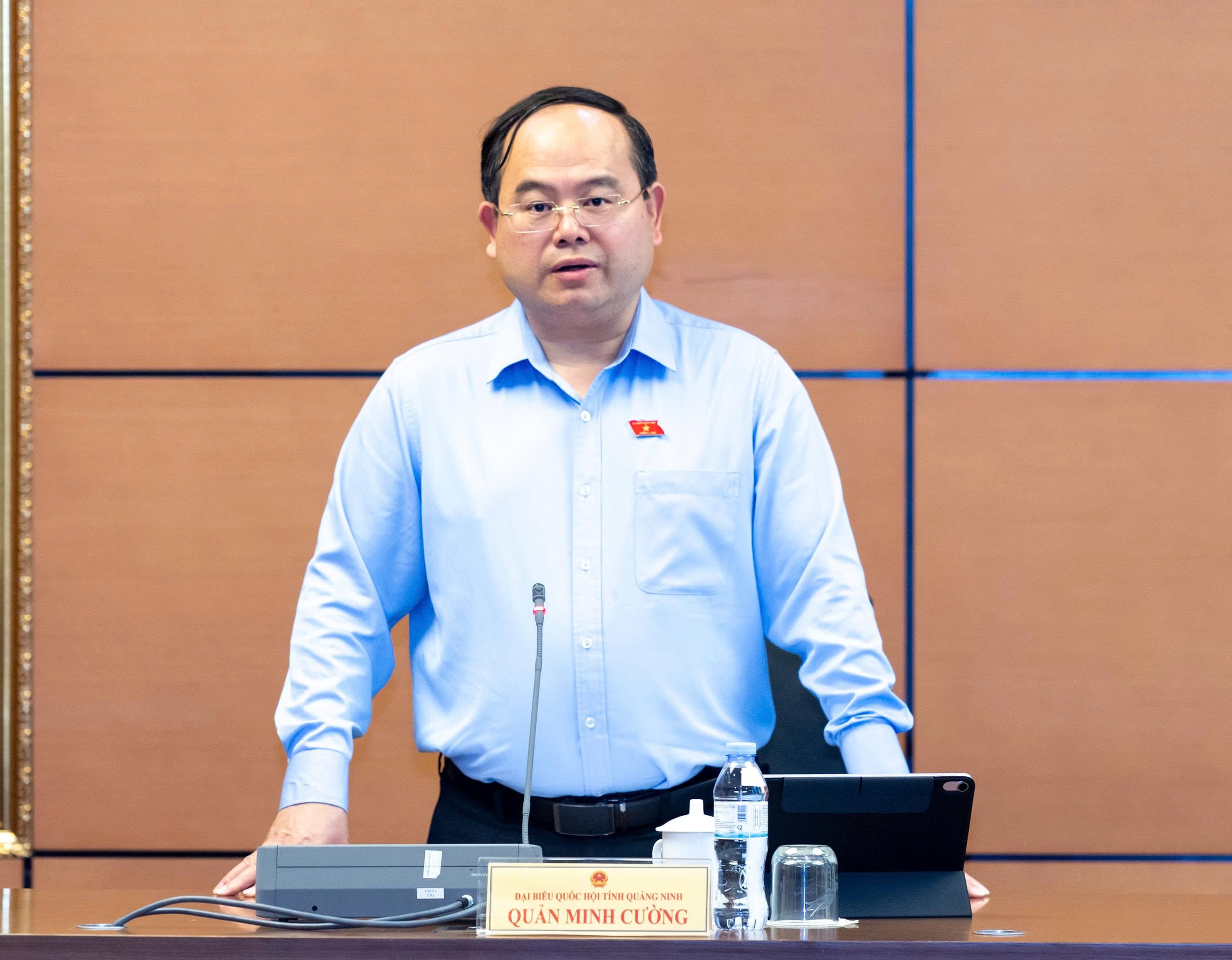 Trưởng Đoàn ĐBQH tỉnh Quảng Ninh Quản Minh Cường phát biểu. Ảnh: Mạnh Hưng