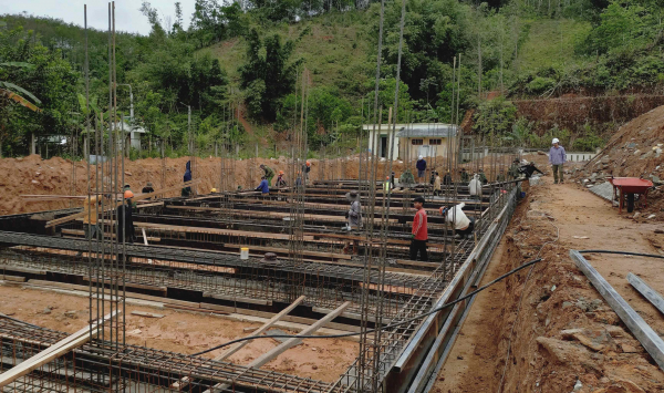 Cách đó không xa, tại xã Tây Giang, dự án Trường phổ thông nội trú liên cấp Tiểu học - THCS Tây Giang với mức đầu tư gần 286 tỷ đồng trên diện tích 4,2ha cũng đang được hối hả thi công. Gần 50 công nhân, cán bộ kỹ thuật vẫn miệt mài trên công trường để triển khai thi công phần móng khu nội trú học sinh tiểu học, khu phòng học…