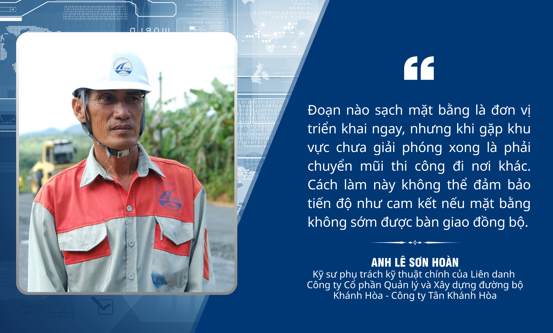 Việc tận dụng đất đào móng, đất tại chỗ không đáp ứng yêu cầu kỹ thuật khiến tiến độ nền đường càng bị kéo dài. Nhà thầu khẳng định rằng chỉ khi mặt bằng thông suốt và có đầy đủ đất đắp, tiến độ thi công mới thực sự được cải thiện rõ rệt.