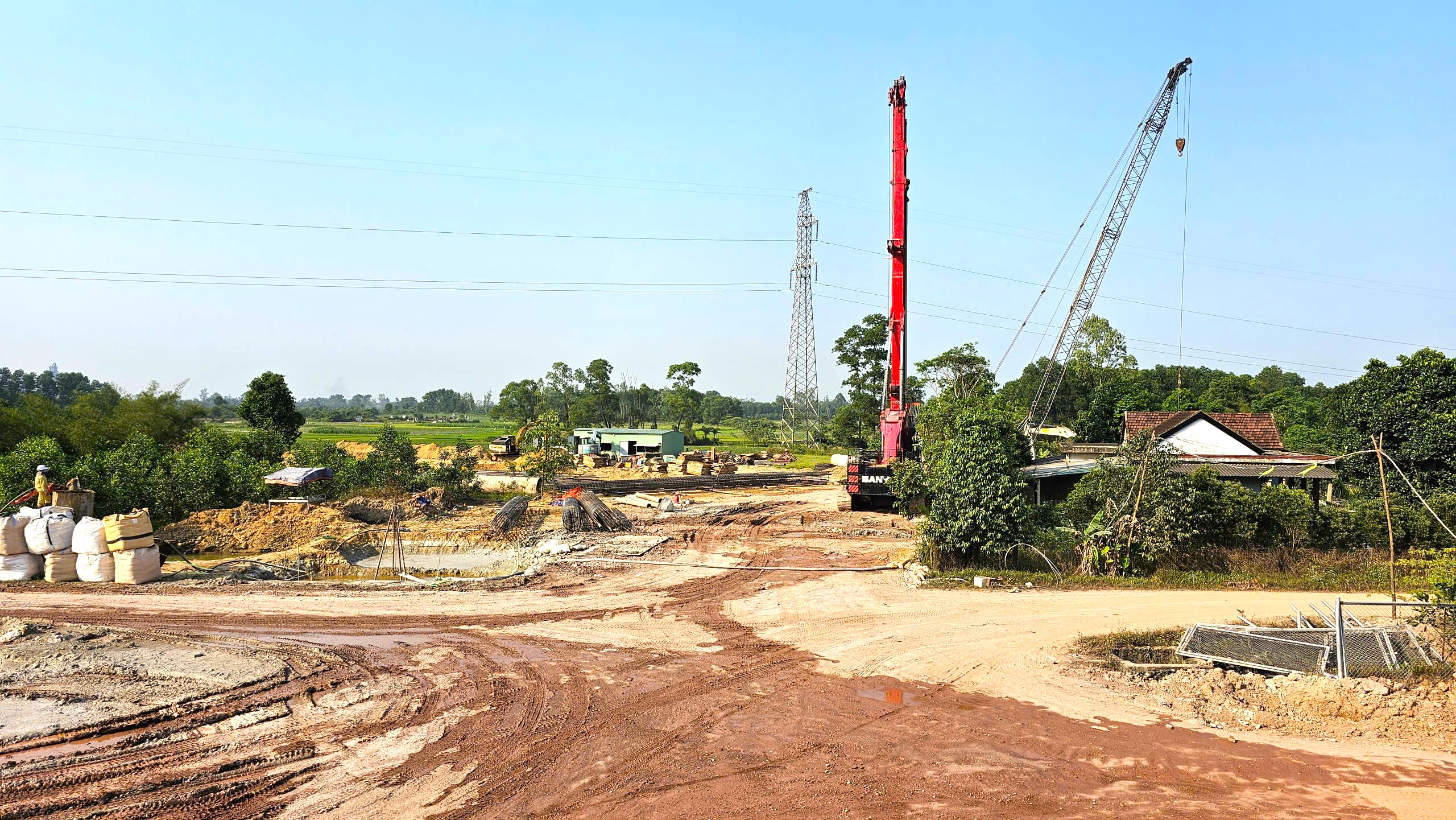 Tại hiện trường, nhà thầu huy động nhân lực tập trung thi công nền đường, xử lý nền đất yếu, cấp phối đá dăm, đúc cống, thi công cống hộp, hầm chui... Tất cả nhà thầu đang nỗ lực thi công đồng loạt để đẩy nhanh tiến độ sớm đưa dự án về đích đúng tiến độ.