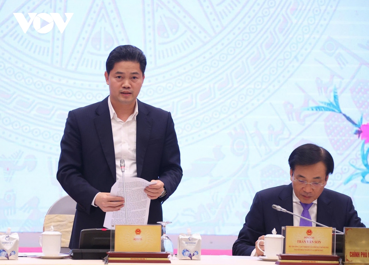Thứ trưởng Thường trực Bộ Y tế Vũ Mạnh Hà thông tin tại họp báo