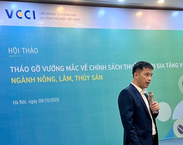 Tại Hội thảo “Tháo gỡ vướng mắc về chính sách thuế GTGT với ngành nông, lâm, thủy sản” vừa được Liên đoàn Thương mại và Công nghiệp Việt Nam (VCCI) phối hợp với 8 hiệp hội, ngành hàng trong lĩnh vực nông nghiệp tổ chức sáng 9/5 tại Hà Nội, ông Đậu Anh Tuấn – Phó Tổng thư ký kiêm Trưởng Ban Pháp chế VCCI nhấn mạnh: “Luật GTGT mới ra đời với nhiều kỳ vọng cải cách, nhưng những vướng mắc hiện nay nếu không được tháo gỡ, hướng dẫn sớm theo hướng phù hợp với thực tiễn sản xuất – kinh doanh thì sẽ trở thành rào cản đáng kể các doanh nghiệp (DN), cản trở sự phát triển của các ngành hàng”.