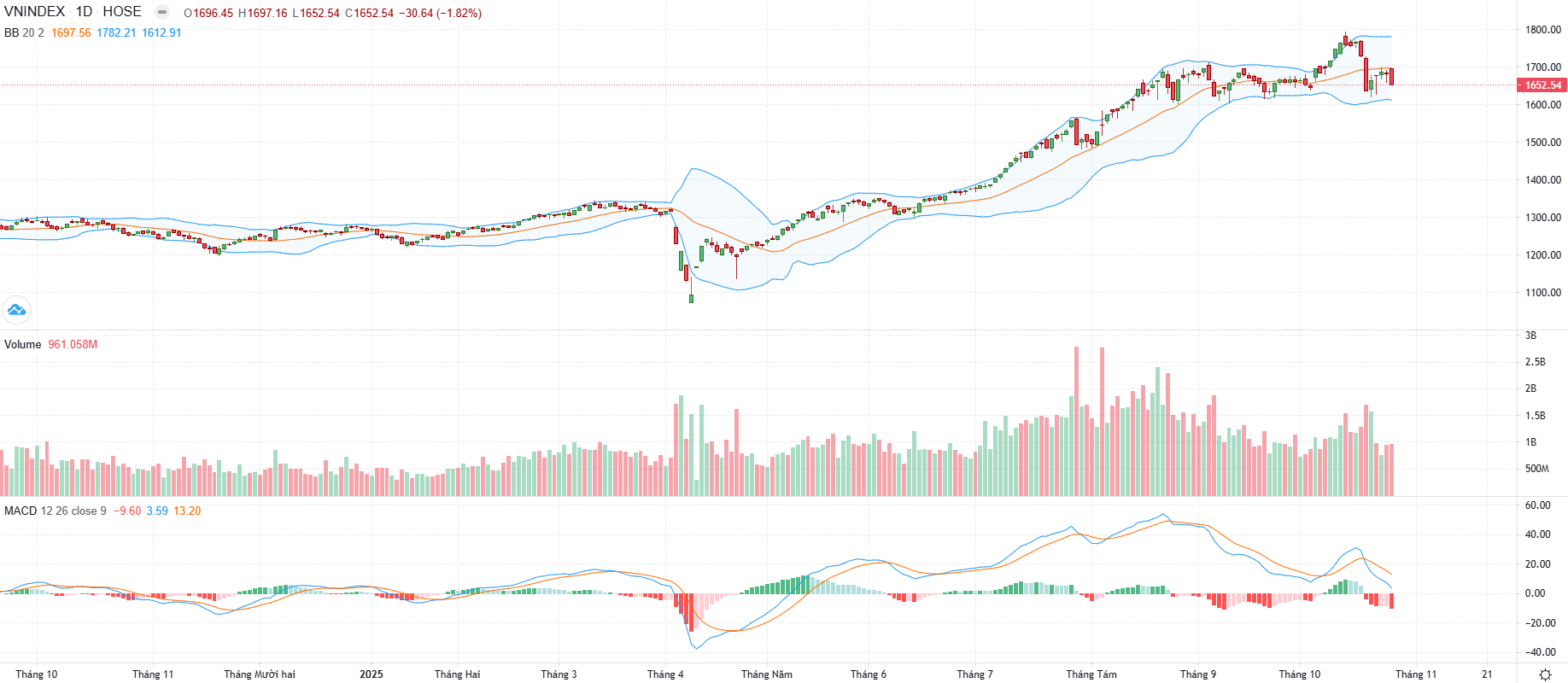 Biểu đồ kỹ thuật VN-Index.