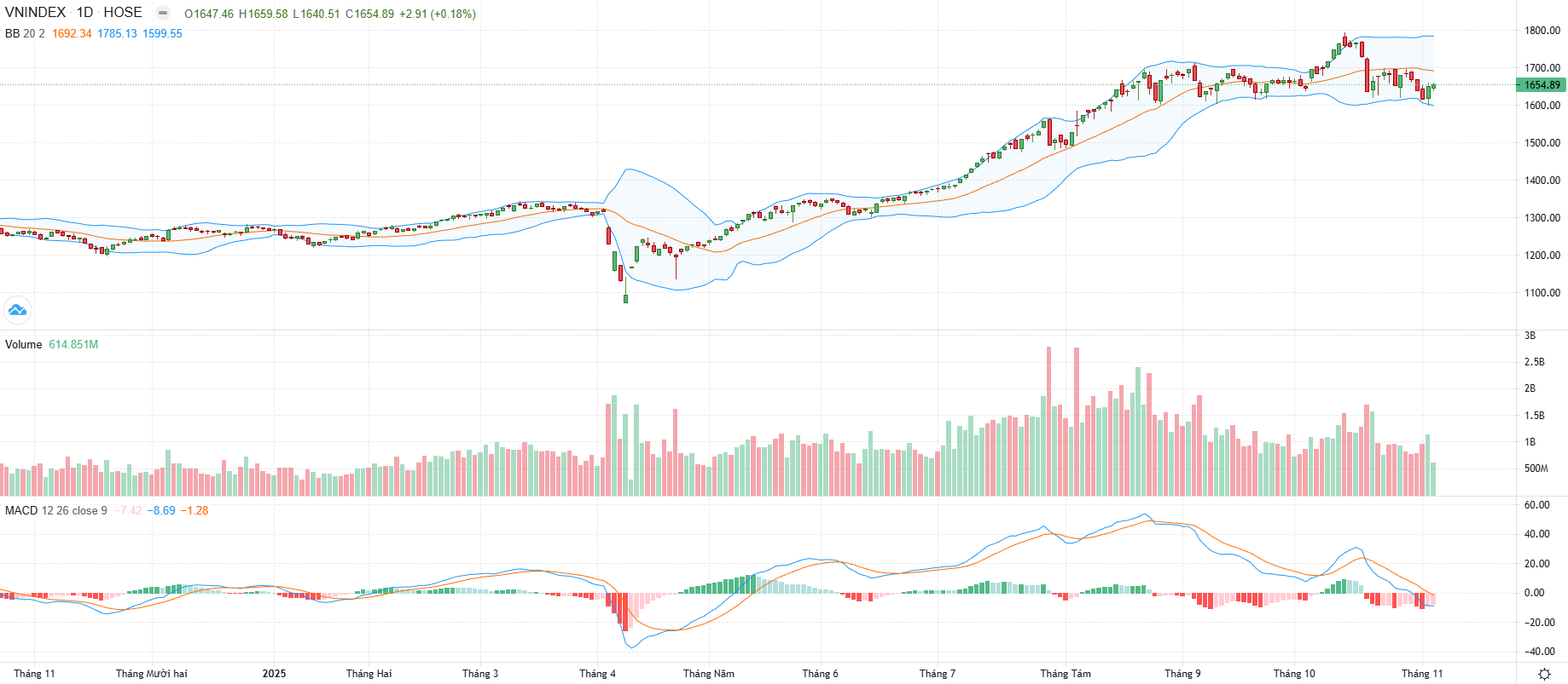 Mặt khác, vùng 1.600-1.620 điểm tiếp tục cho thấy vai trò là vùng hấp thụ cung hiệu quả, nơi dòng tiền bắt đáy liên tục xuất hiện kể từ tháng 8/2025.