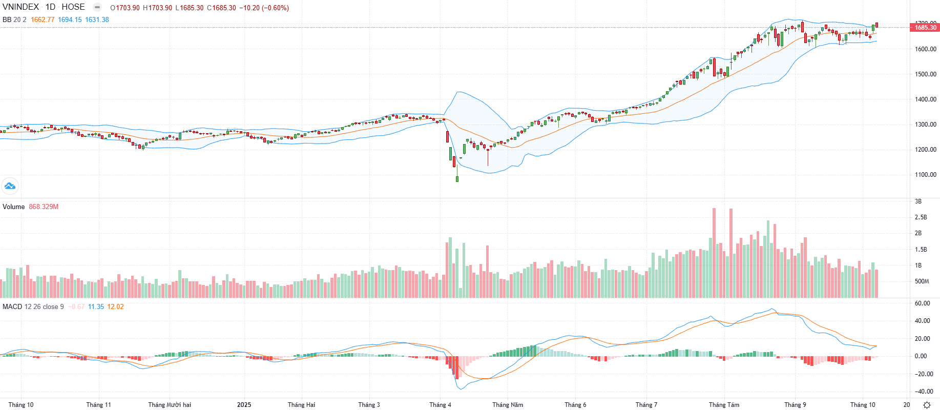 Biểu đồ kỹ thuật VN-Index.