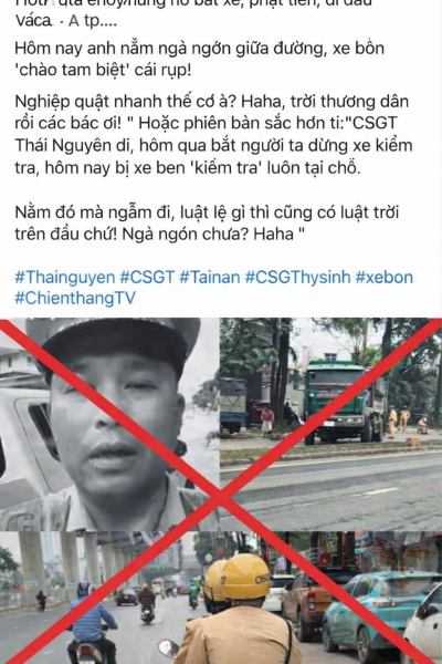 Cùng ngày, Công an phường Quan Triều (tỉnh Thái Nguyên) cũng ra quyết định xử phạt vi phạm hành chính số tiền 5 triệu đồng đối với một trường hợp có hành vi chia sẻ, bình luận thông tin sai sự thật trên mạng xã hội. Trong quá trình tuần tra, kiểm soát trên môi trường mạng, lực lượng chức năng phát hiện tài khoản “T.P” đăng bình luận sai sự thật dưới một video phát trực tiếp liên quan đến vụ tai nạn khiến Trung tá Lao Hoàng Hải, cán bộ Phòng Cảnh sát giao thông Công an tỉnh Thái Nguyên, hy sinh khi làm nhiệm vụ. Nội dung bình luận mang tính xuyên tạc, bịa đặt, làm giảm uy tín của lực lượng công an.
