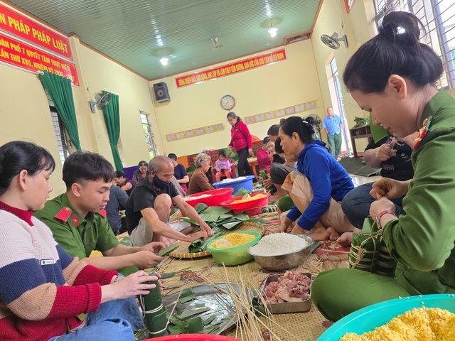 Theo Thượng tá Nguyễn Công Hòa, trước tình hình mưa lũ kéo dài gây ngập lụt ở nhiều khu vực, lực lượng công an phường chủ trì phối hợp với lực lượng trung đoàn cảnh sát cơ động tổ chức gói bánh chưng, bánh tét cứu trợ. Nghe tin, người dân trong phường đã tích cực lên các hội trường tổ dân phố, thôn buôn để hỗ trợ gói bánh.