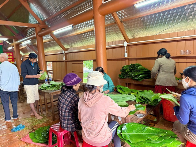 "Sáng nay, tôi sắp xếp công việc rồi lên hội trường tổ dân phố để cùng mọi người gói bánh chưng, bánh tét gửi xuống người dân vùng ngập lụt" - chị H'Xuân Niê nói.