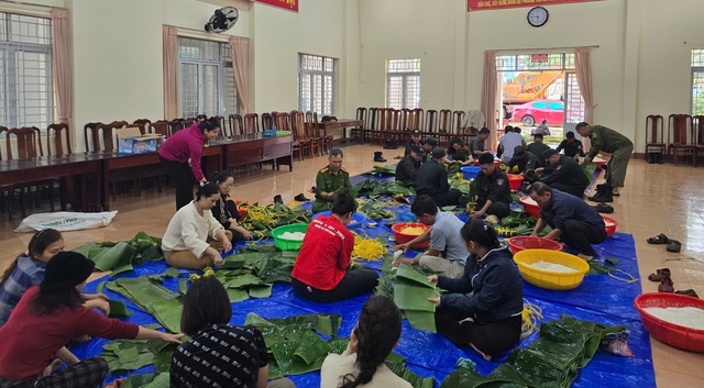 Tổ chức gói bánh chưng, bánh tét cứu trợ đồng bào vùng lũ lụt