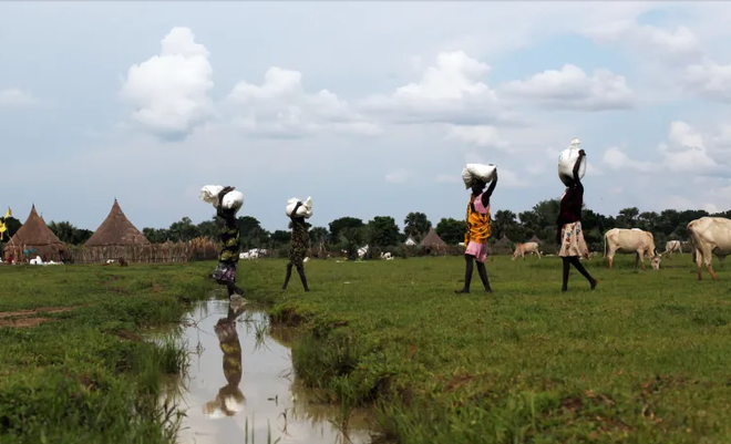 Bắt đầu từ 2019, hàng loạt trận lũ lịch sử đã nhấn chìm hàng nghìn kilômét vuông đất và khiến hàng triệu người phải rời bỏ nhà cửa. Cùng lúc, mưa nắng thất thường tàn phá các cộng đồng nông nghiệp ở vùng Đông Equatoria, nơi được xem là vựa lúa của đất nước.