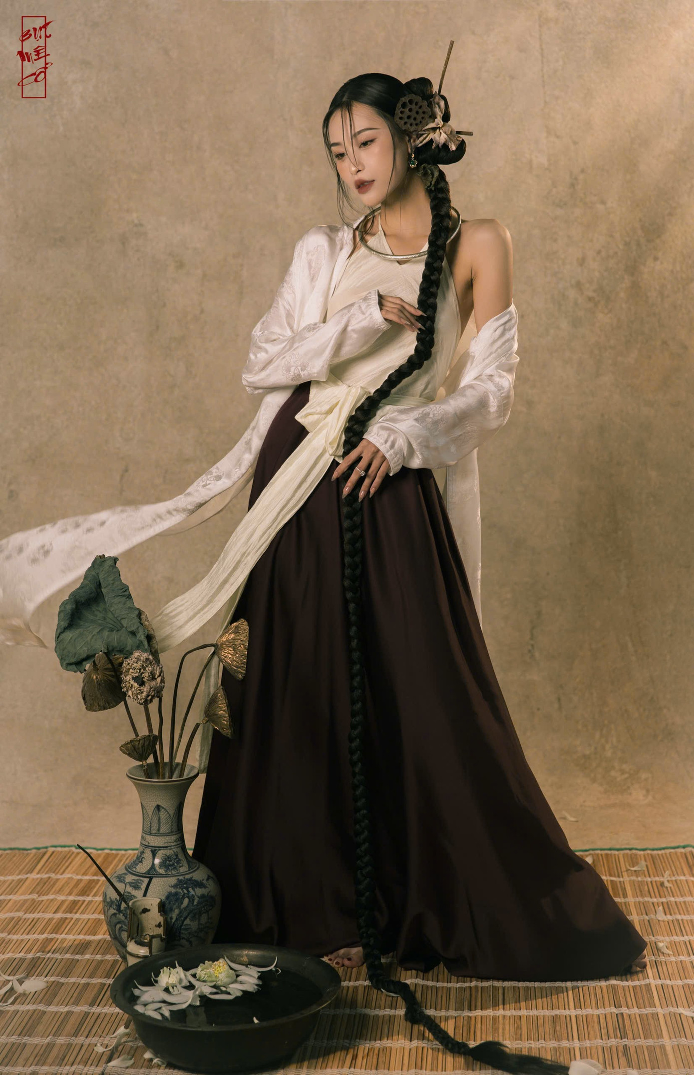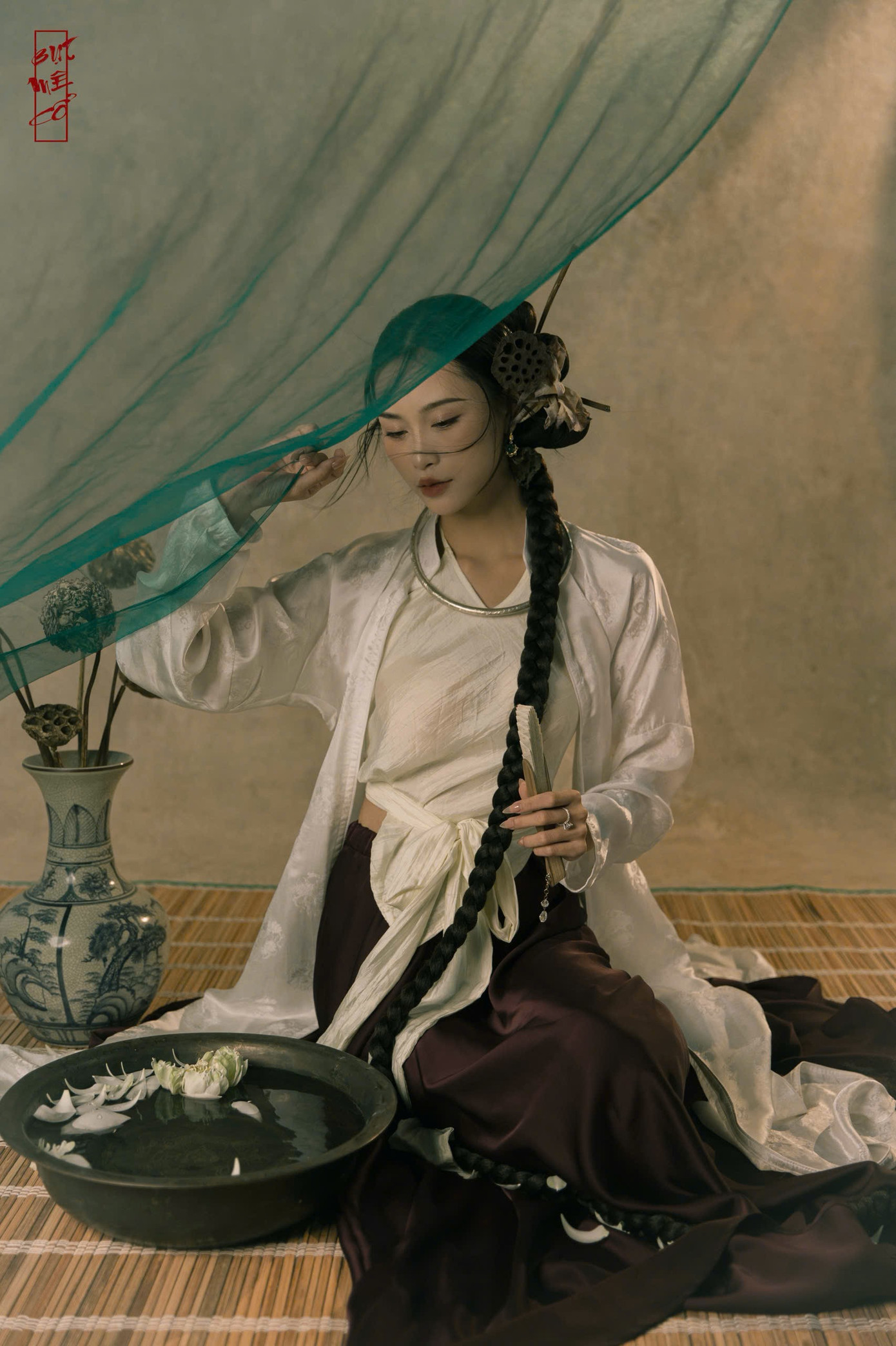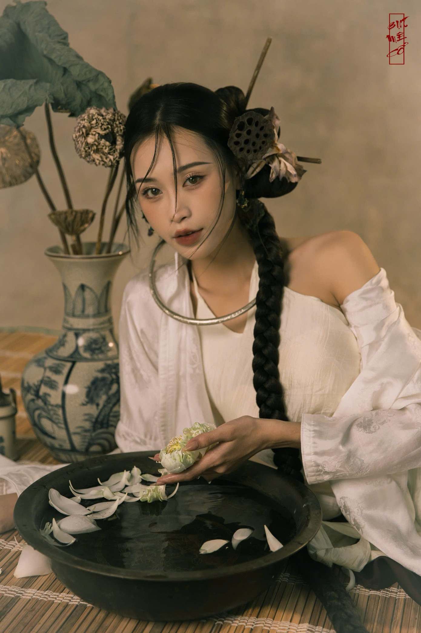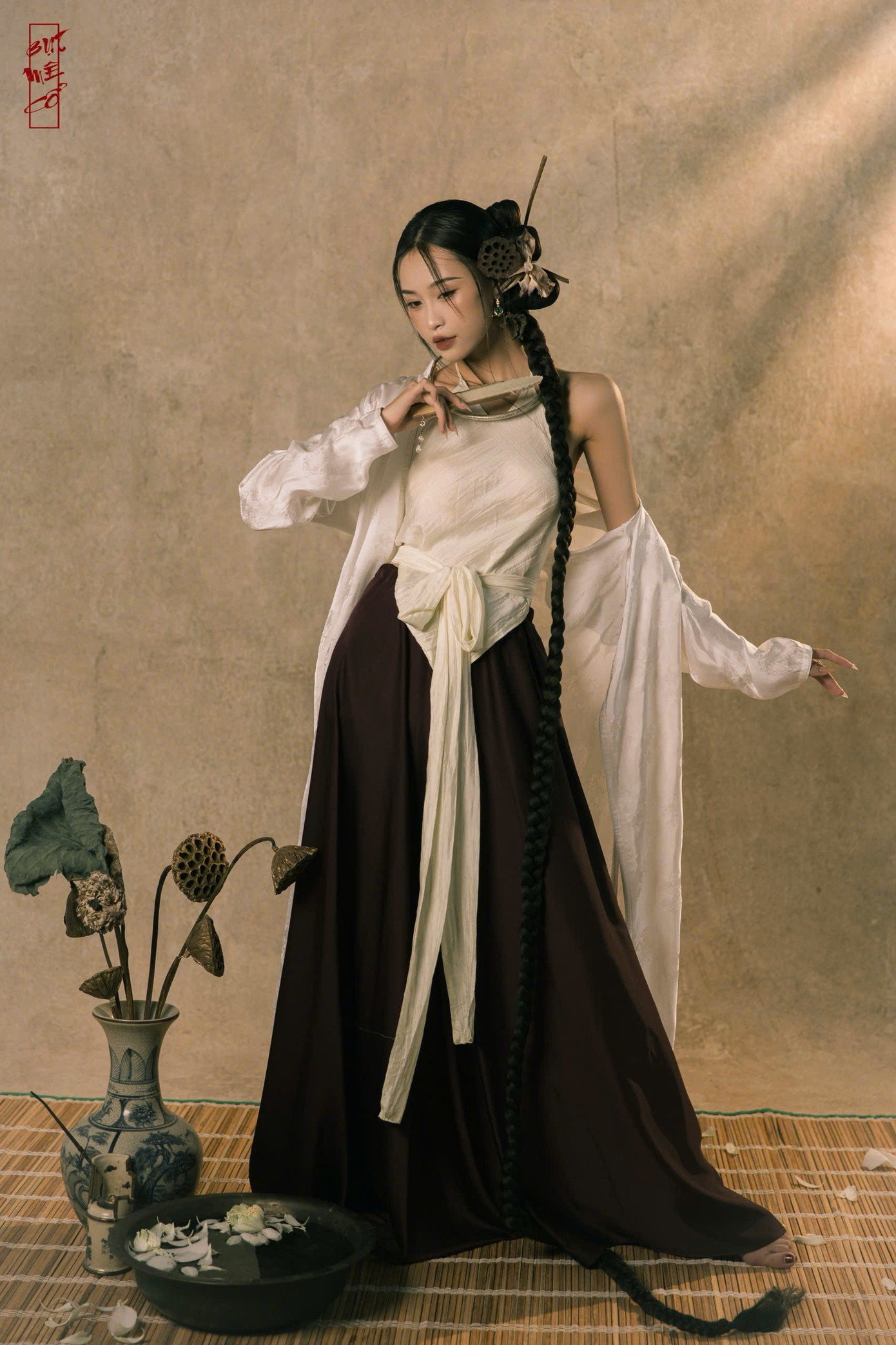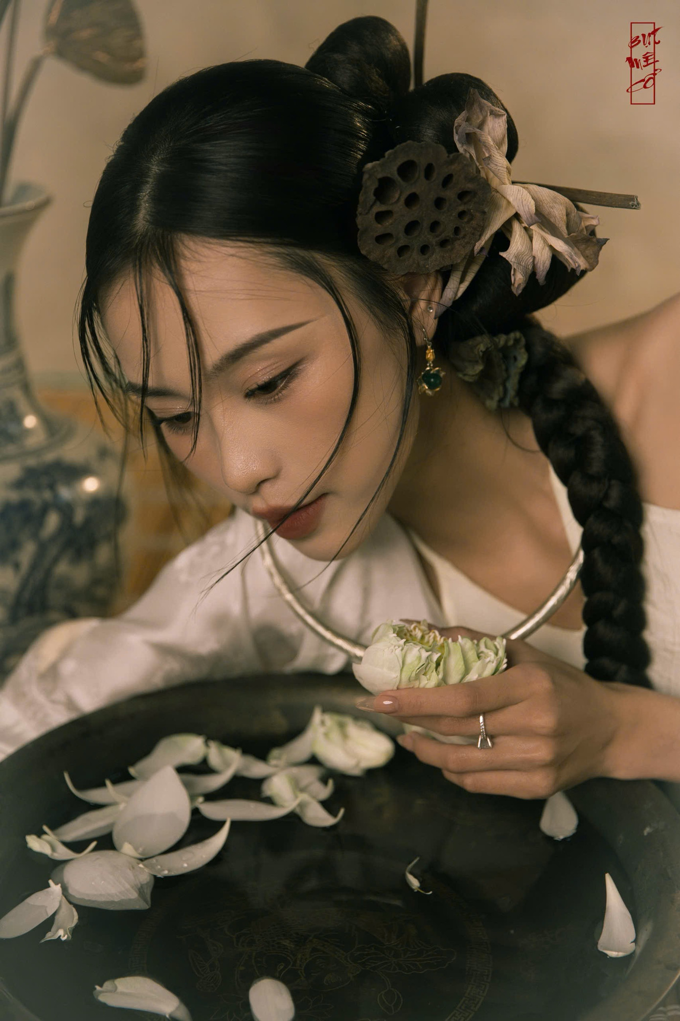 Cảm hứng cho bộ ảnh đến từ hình ảnh người thiếu nữ xưa trong tranh cổ, giữa không gian tĩnh lặng và mộc mạc. Uyên Phụng muốn tái hiện vẻ đẹp dịu dàng, sâu lắng, tượng trưng cho nét đẹp truyền thống Á Đông, bằng cách kết hợp trang phục, ánh sáng và sắc hoa sen khô - biểu tượng của sự thanh khiết và tĩnh tâm.