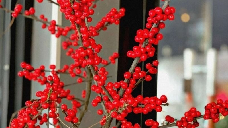 Với sắc đỏ rực rỡ và vẻ đẹp sang trọng, đào đông đỏ mang ý nghĩa thịnh vượng và tài lộc. Những chùm quả đỏ mọng trên cành tạo điểm nhấn nổi bật, phù hợp với không khí khai xuân và phong cách trang trí hiện đại.