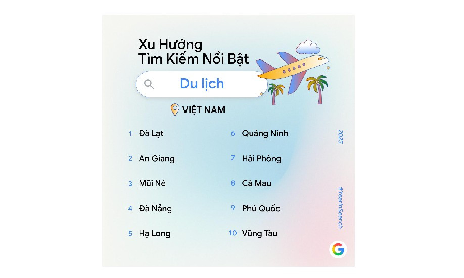 Du lịch nội địa bùng nổ khi top 10 địa điểm tìm kiếm đều thuộc về các điểm đến Việt Nam.